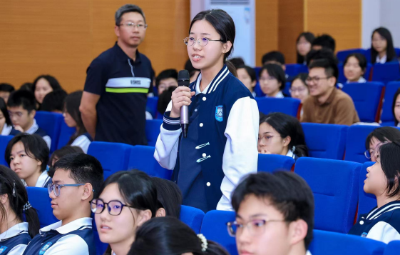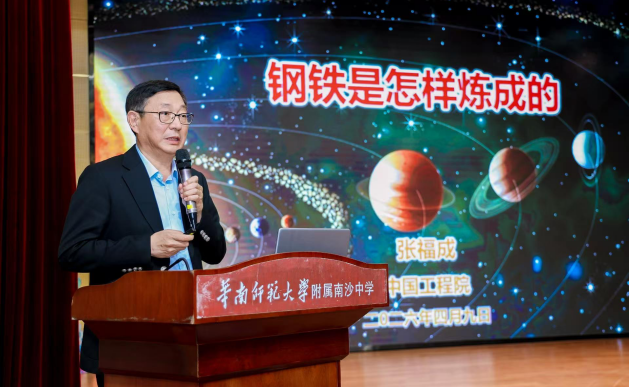中国科学院院士、东华大学材料科学与工程学院院长、先进纤维材料全国重点实验室主任朱美芳走进广州大学附属中学南沙实验学校,以《以人为本,“纤”引未来》为题,面向高二学生,讲述了纤维材料从智能穿戴到深空探测的宏伟蓝图,鼓励同学们“以青春之我探索未知,以求真之火点亮未来”。